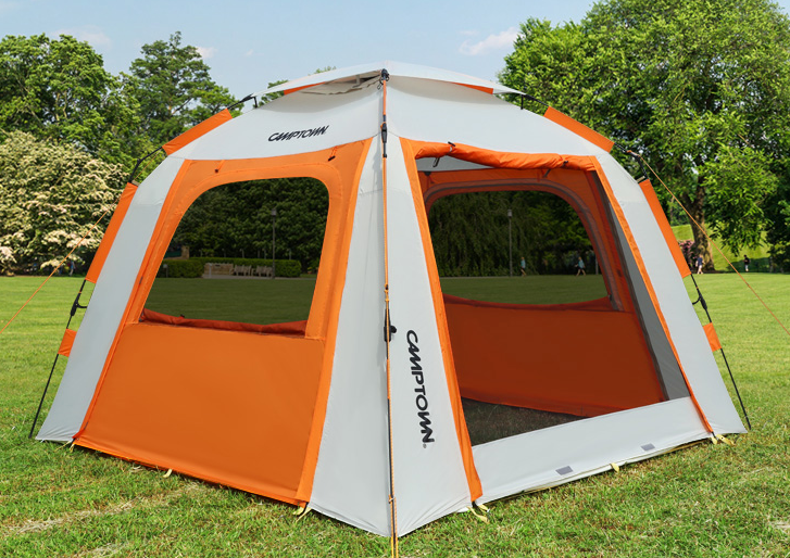 Alle Zelte sind gegenüberliegend ohne Stolperkante bis unten offen